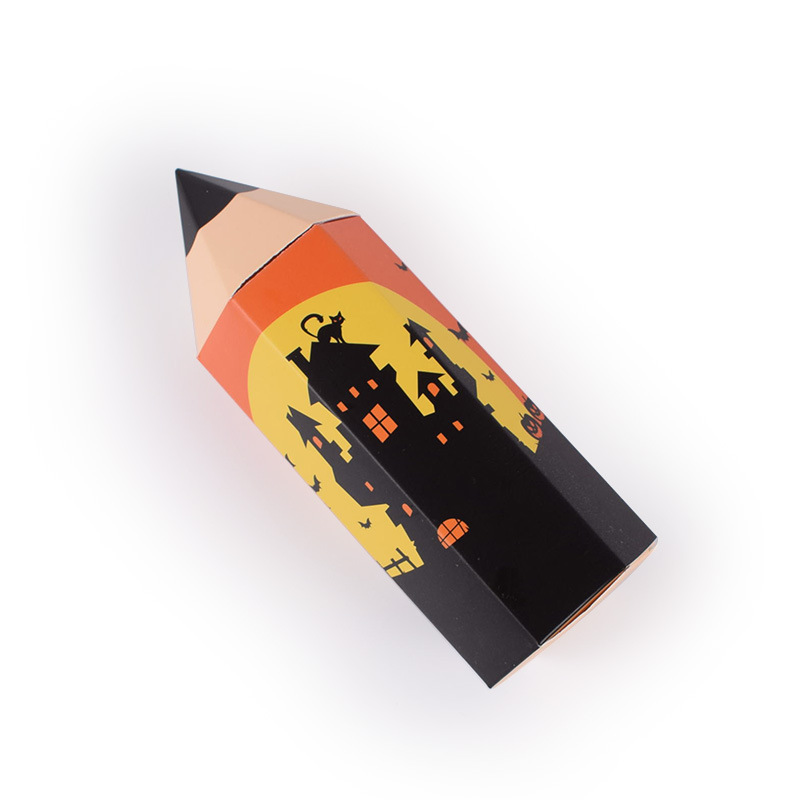 - Set of 10 pencil-shaped gift boxes with Halloween-themed designs