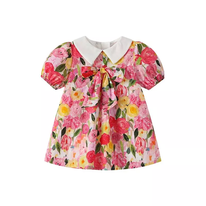 Dress your baby girl in pure charm with this sweet and stylish summer dress, perfect for toddlers aged 0 to 3 years. Designed with a beautiful oil painting-style rose floral print and topped off with an oversized bow, this A-line dress is a dreamy addition to any little girl’s wardrobe. Made with breathable, soft cotton, it’s gentle on your baby’s skin and keeps her cool and comfy on sunny days. Whether it’s a picnic, a party, or just a day out with family, this dress brings an extra sprinkle of joy to every occasion.
