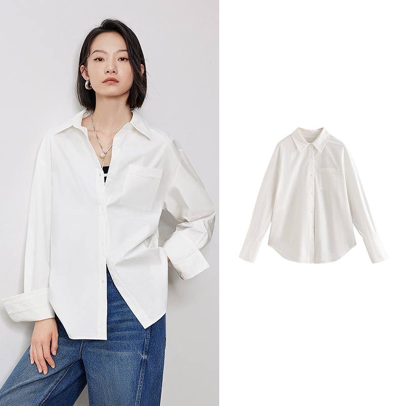 Our blouse stands out for its exceptional quality and thoughtful design. The non-stretch fabric ensures that the blouse retains its shape and structure, while the pockets add a practical element. The midweight thickness makes it suitable for layering during the cooler months, keeping you warm and stylish. The turn-down collar and single-breasted closure provide a polished and refined look, making this blouse a must-have for every fashion-forward woman.