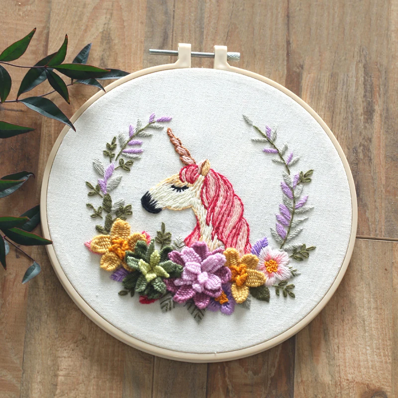 - Complete kit includes embroidery needles (2 pcs), printed embroidery cloth, colorful threads, plastic hoop, and instructions