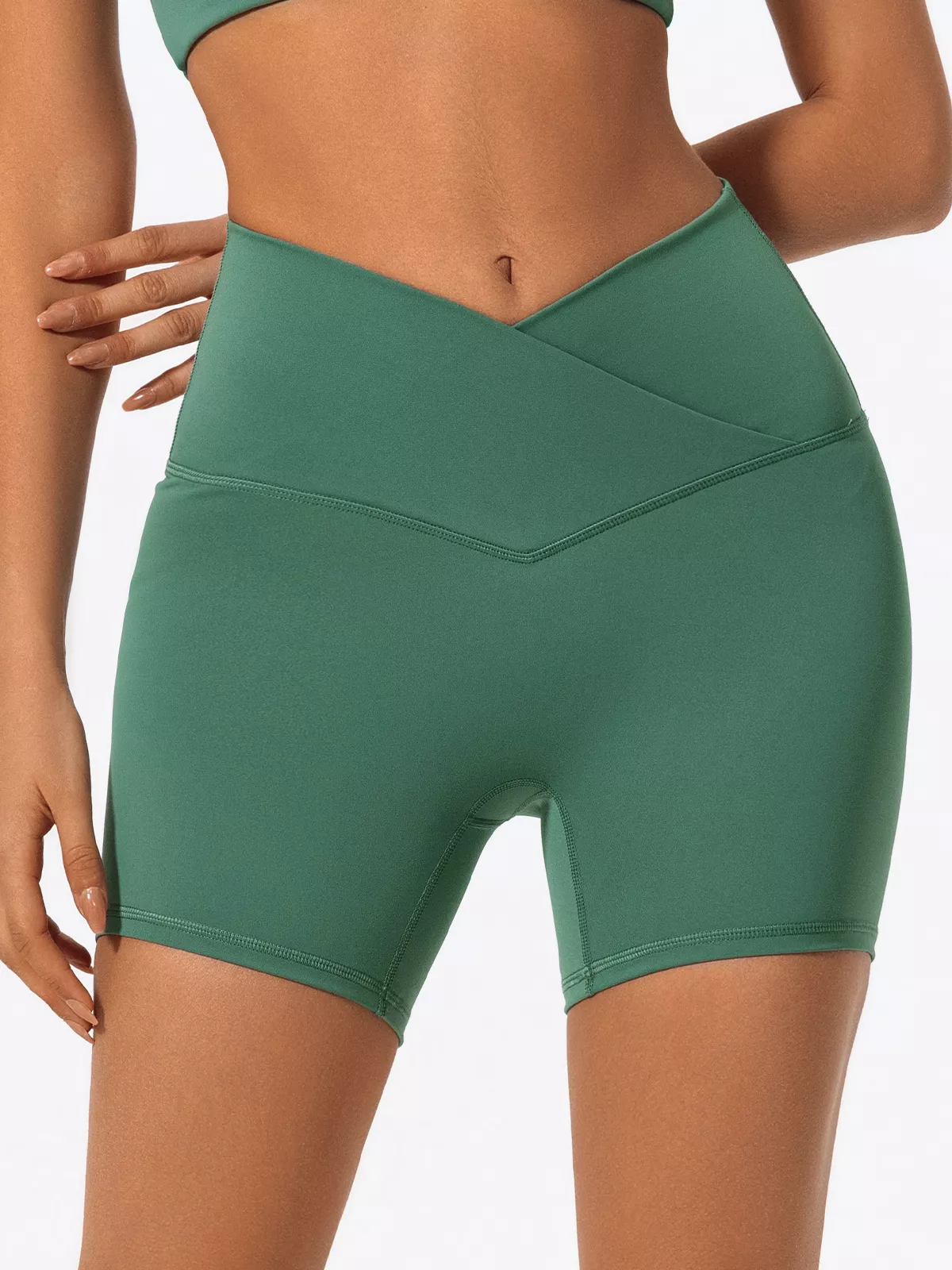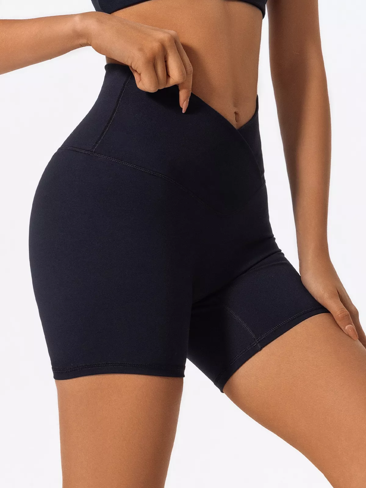 The cross-waist detail adds a trendy, figure-flattering touch while keeping the waistband snug and in place—even during high-intensity moves. The breathable fabric wicks away moisture, helping you stay dry and focused, no matter how hard you push. These shorts are ultra-stretchy and designed to contour your curves without squeezing, making them your go-to for anything from lounging to lifting.