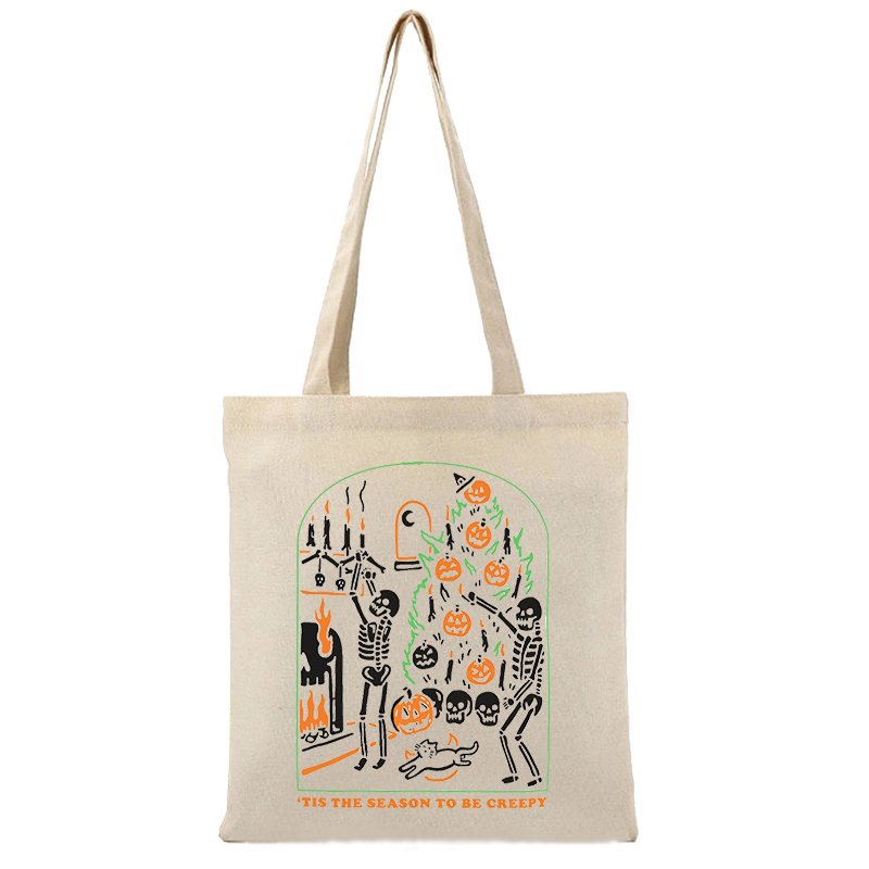 What makes the Pumpkin Skeleton Canvas Shoulder Bag special is its combination of high-quality materials, sustainable design, and unique aesthetic. The spooky pumpkin skeleton graphic is not only eye-catching but perfect for those who love adding a bit of festive flair to their wardrobe. Plus, it’s a practical choice for eco-conscious shoppers, as its durable construction and reusable nature make it a must-have for reducing waste.