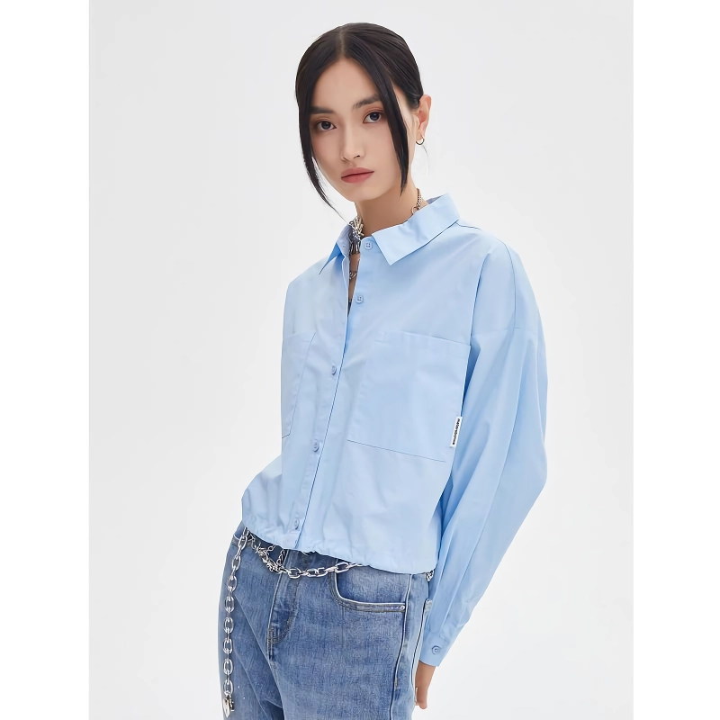 This blouse isn’t just about good looks. Its loose, oversized fit and crop length make it a trendy yet practical choice for various activities. Whether you’re heading to a brunch, a casual meet-up with friends, or simply enjoying a relaxed weekend, this blouse offers the ideal balance between style and comfort. The turn-down collar and single-breasted closure add a classic touch, while the pocket detailing provides a hint of functionality and charm.